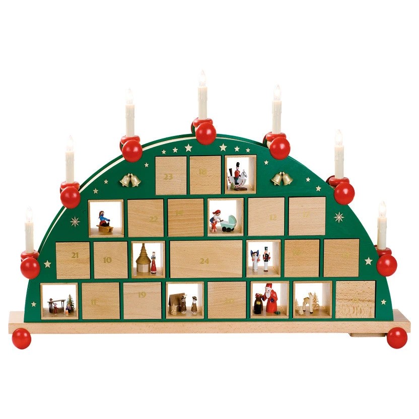 German Candle Arch Advent Calendar, Length 76 Cm / 30 Inch, Natural, Electrically Illuminated, Original Erzgebirge By Richard Glaesser Seiffen
