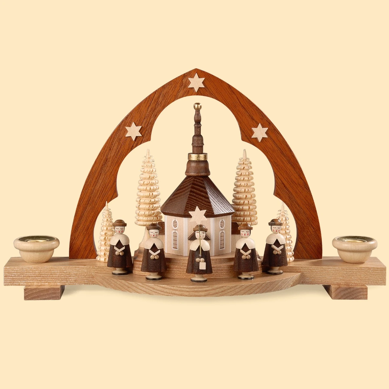 German Candle Arch Carolers, Length 30 Cm / 12 Inch, Natural, Original Erzgebirge By Mueller Seiffen