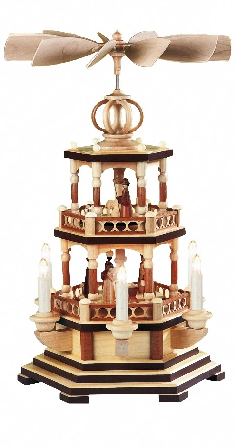 German Christmas Pyramid Christmas Story, 2-tier, Height 47 Cm / 19 Inch, Electrical Illuminated And Driven (120V, 50Hz), Natural, Original Erzgebirge By Mueller Seiffen