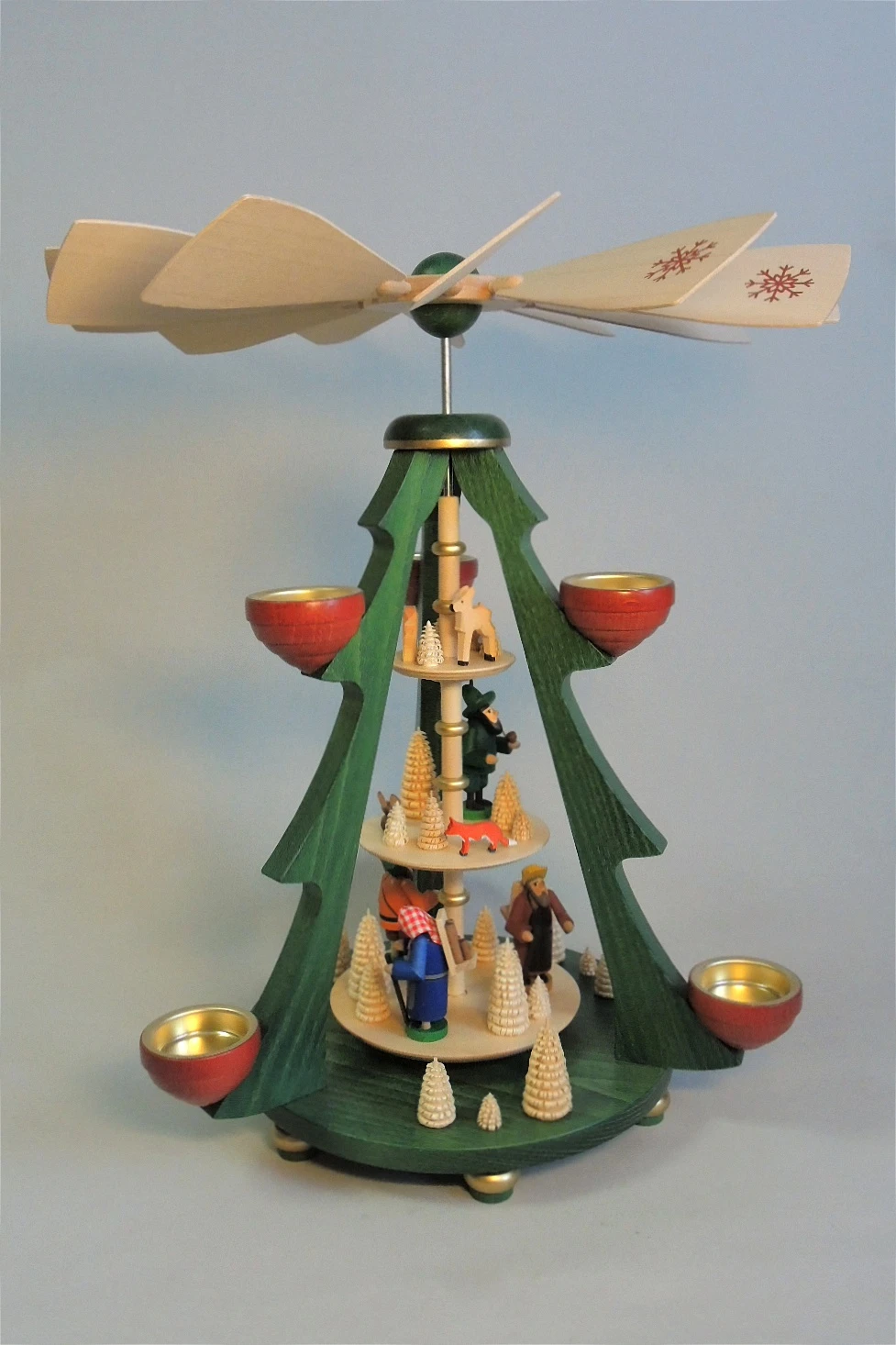 German Christmas Pyramid Forest People, 3-tier, Height 40 Cm / 16 Inch, Natural, Original Erzgebirge By Richard Glässer