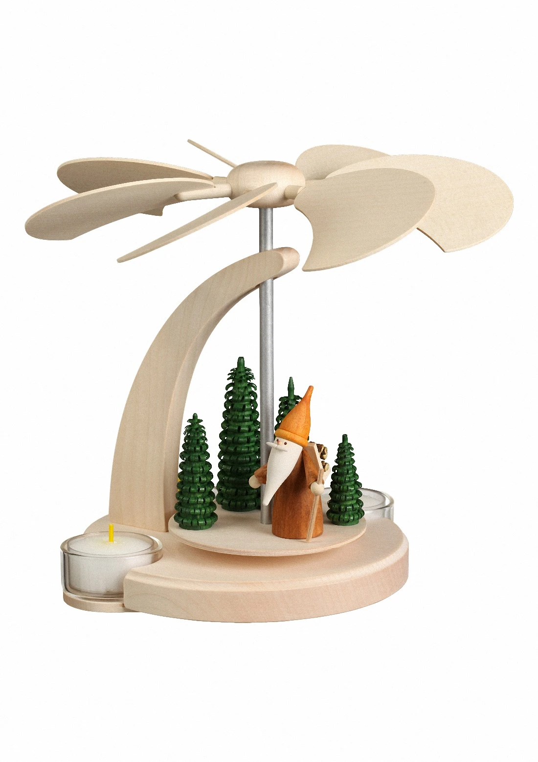 German Christmas Pyramid Forest Scene, 1-tier, Height 18 Cm / 7 Inch, Natural, Original Erzgebirge By Seiffener Volkskunst