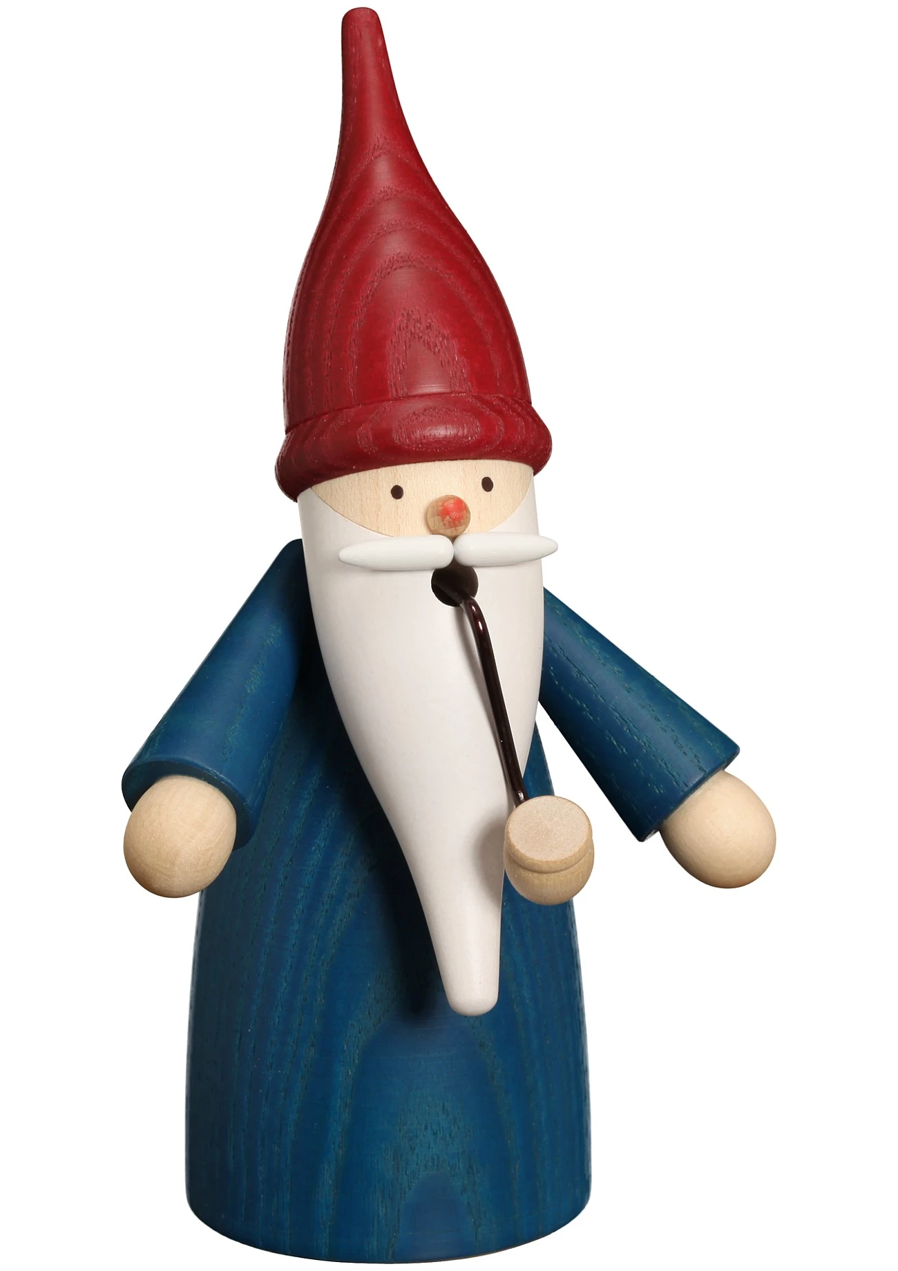 German Incense Smoker Gnome Blue, Height 16 Cm / 6 Inch, Original Erzgebirge By Seiffener Volkskunst SV 12301/2