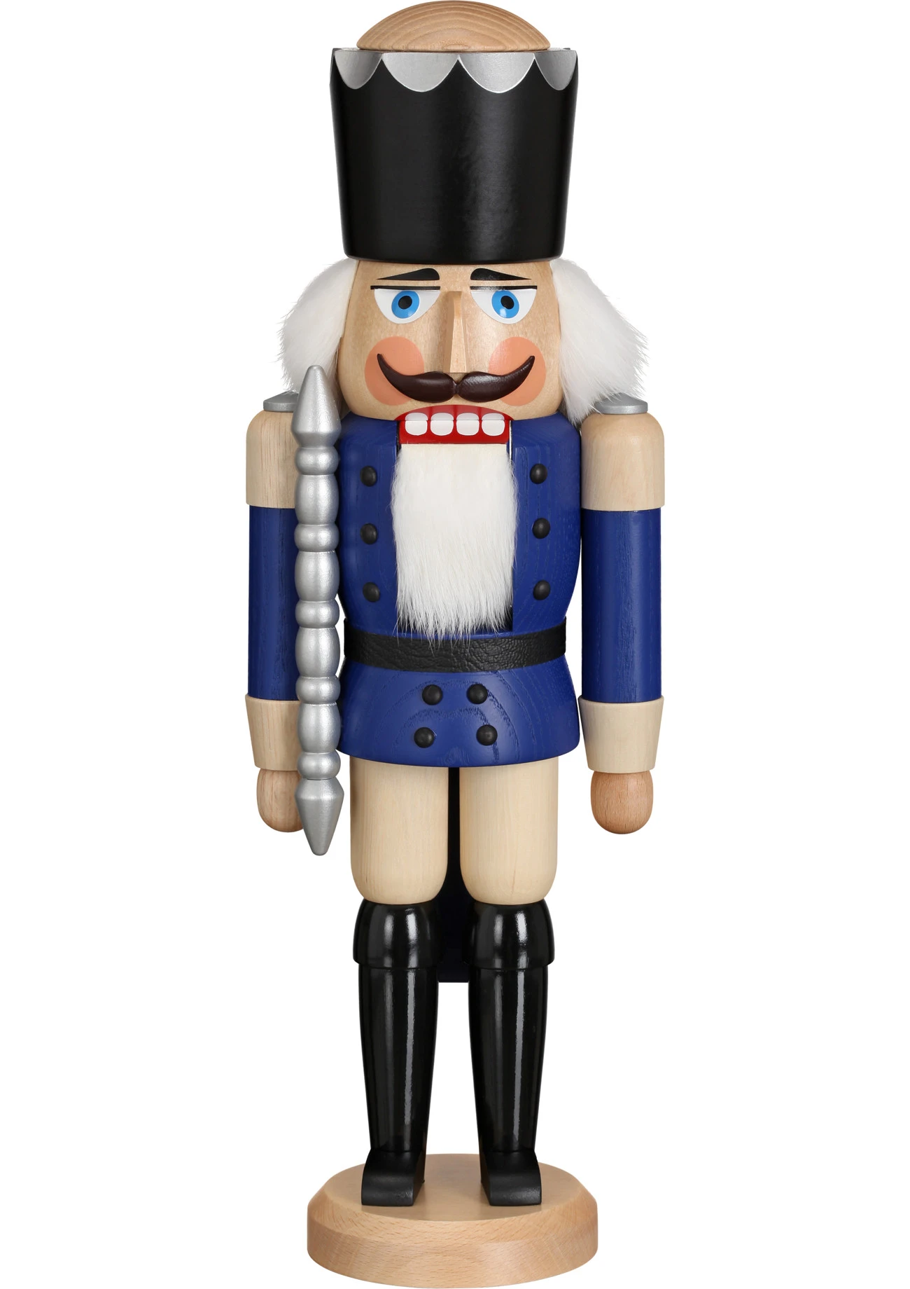German Nutcracker King Ash-tree Blue, Height 39 Cm / 15 Inch, Original Erzgebirge By Seiffener Volkskunst SV 11211/2