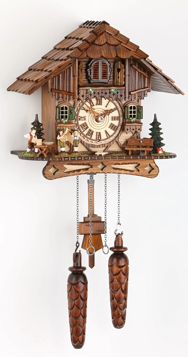 Cuckoo ClockBlack Forest House With Moving Beer Drinkers And Mill Wheel